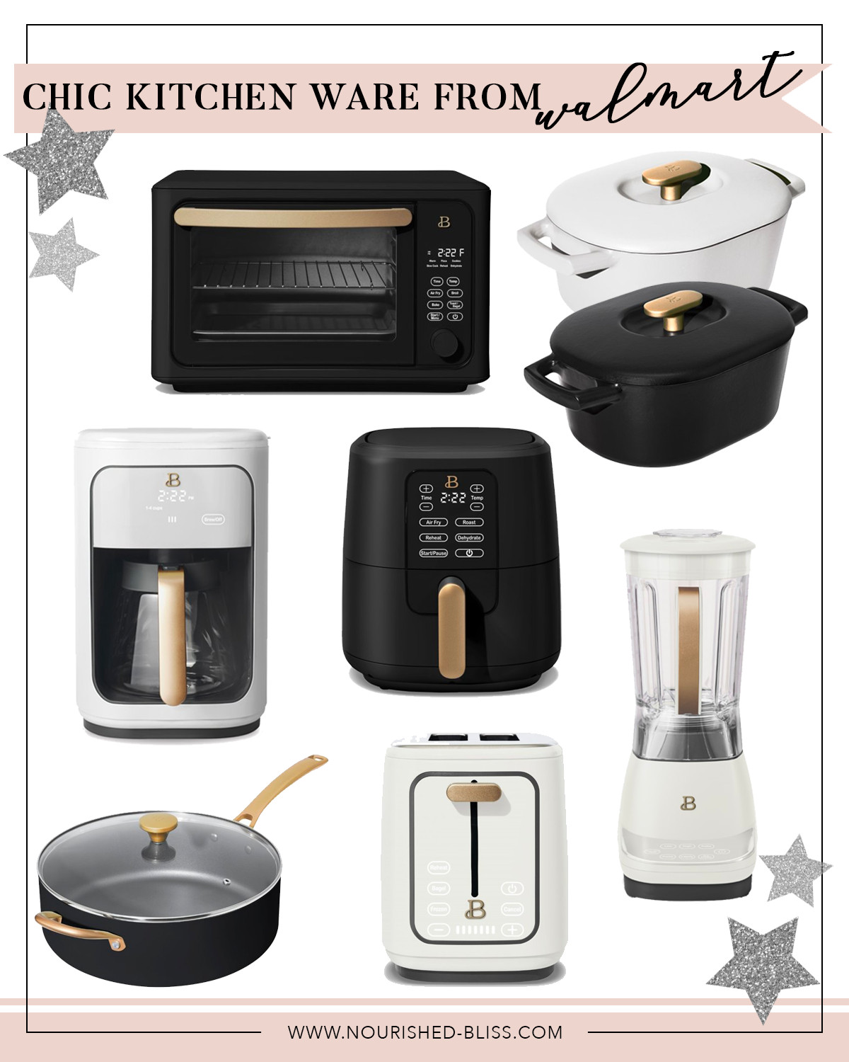 When I saw these, I immediately stopped my scroll. How gorgeous and chic looking are these kitchen appliances! And they are all under $100 (minus that air fryer + toaster oven combo thats only $130!). I couldn’t believe these came from Walmart, but they have obviously stepped up their game! If I didn’t just get an air fryer, I would’ve added this one to my basket! How pretty would these look on a kitchen countertop?